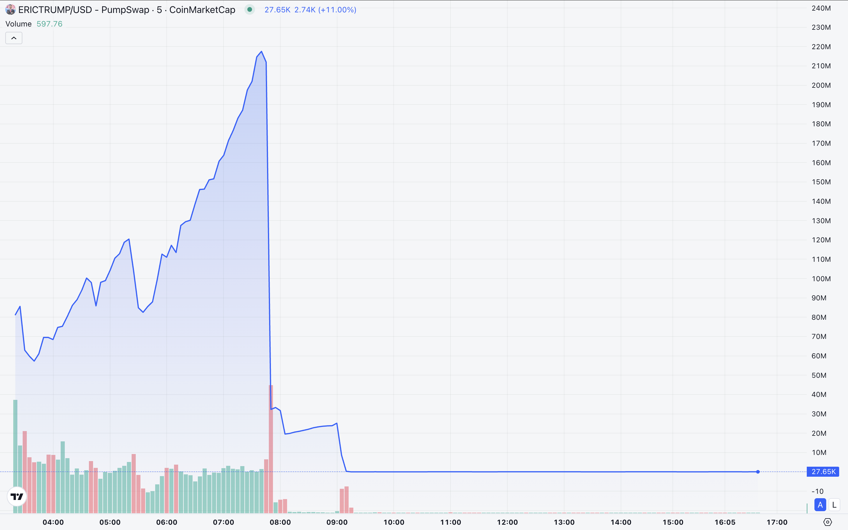 عملة ميم زائفة تعتمد على إريك ترامب تعرضت لعملية احتيال ضخمة اليوم، حيث انخفضت من قيمة سوقية تبلغ 160 مليون دولار إلى 30,000 دولار تقريبًا على الفور. أظهرت العملة عدة خصائص مشبوهة مسبقًا.