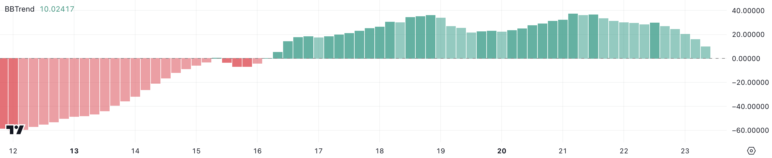 فارتكوين مؤشر BBTrend انخفض بشكل حاد إلى 10، مما يشير إلى انخفاض كبير من قراءته 36,6 قبل يومين فقط. بينما حافظ المقياس على سلسلة إيجابية لمدة سبعة أيام متتالية، فإن انخفاضاته المتتالية خلال الـ 48 ساعة الماضية تشير إلى ضغط هبوطي متزايد في المدى القصير.