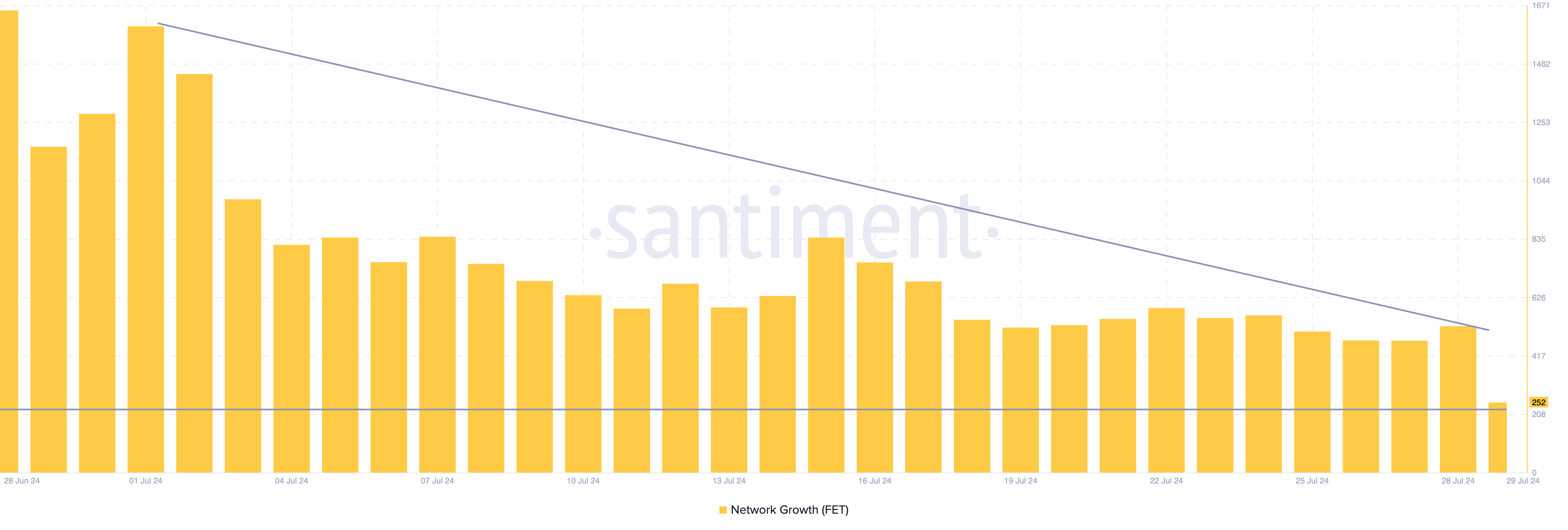 زيادة في هذا المقياس تشير إلى ارتفاع في الجذب. ومع ذلك، نظرًا لأن العدد انخفض، فهذا يعني أن FET يكافح لجذب التبني من المشاركين الجدد في السوق.
