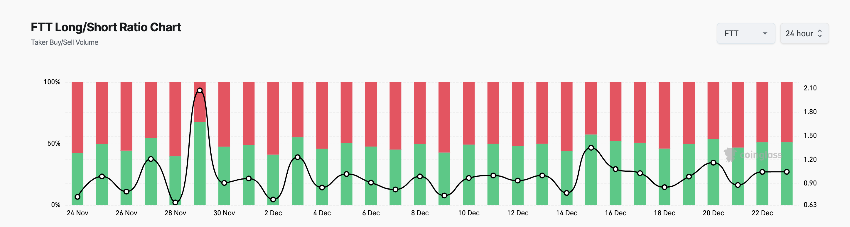 علاوة على ذلك، مع اقتراب 3 يناير، قام حاملو FTT بفتح المزيد من الرهانات لصالح استمرار ارتفاع السعر. يعكس نسبة Long/Short هذا. حتى كتابة هذه السطور، يقف هذا عند 51,15%.