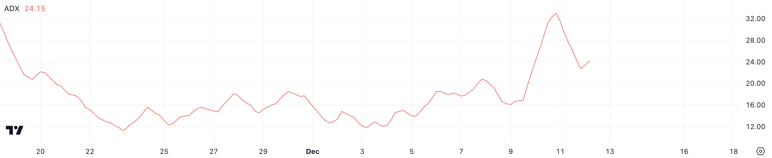 وصل مؤشر القوة النسبية لـGOAT إلى 24 في 10 ديسمبر، مشيرًا إلى ظروف البيع المفرط بعد فترة من الضغط البيعي الكبير. ومع ذلك، تعافى منذ ذلك الحين وهو الآن عند 58,7، مما يشير إلى عودة إلى منطقة أكثر حيادية. هذا التحول يشير إلى أن زخم البيع قد تراجع، وأن العملة تستعيد الاستقرار مع زيادة نشاط الشراء.