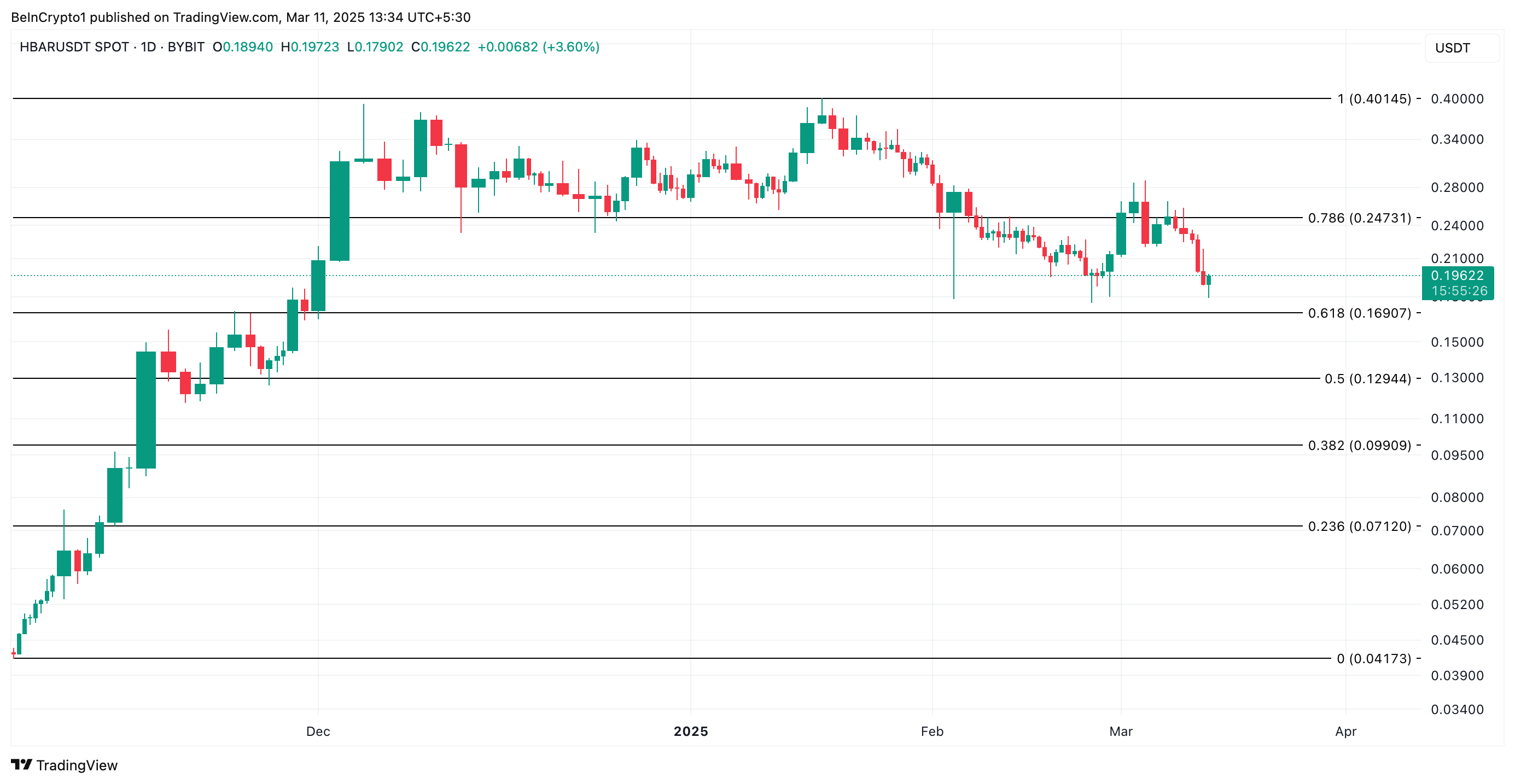 سيؤدي ارتفاع مستمر في ضغط البيع في أسواق HBAR الفورية إلى تمديد انخفاض سعره على المدى القصير. في هذه الحالة، قد ينخفض سعره إلى أدنى مستوى له في ثلاثة أشهر عند $0,19.