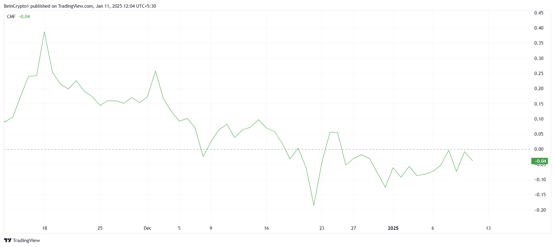 يسلط القراءة المستمرة الهابطة لـ CMF الضوء على قلق أوسع بشأن عدم قدرة العملة البديلة على توليد زخم صعودي. أبقى هذا التردد بين المشاركين في السوق HBAR محاصرًا في مرحلة التوحيد، مما يمنع أي حركة حاسمة يمكن أن تعيد ثقة المستثمرين في المدى القريب.