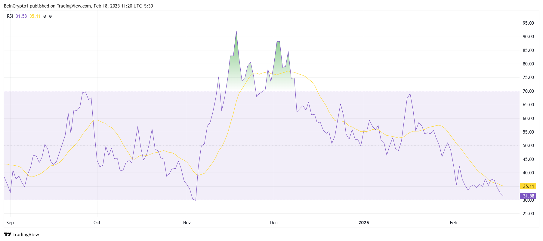 لكي يتمكن HBAR من التعافي، قد يحتاج السعر للانخفاض أكثر، ربما إلى ما دون $0,200، لاختبار مستوى الدعم عند $0,182. سيدفع هذا مؤشر القوة النسبية إلى منطقة البيع المفرط، مما قد يؤدي إلى انعكاس ويمهد الطريق لتعافي السعر. غالبًا ما يشير الانخفاض إلى هذه المنطقة إلى نهاية الاتجاه الهبوطي وبداية حركة صعودية.