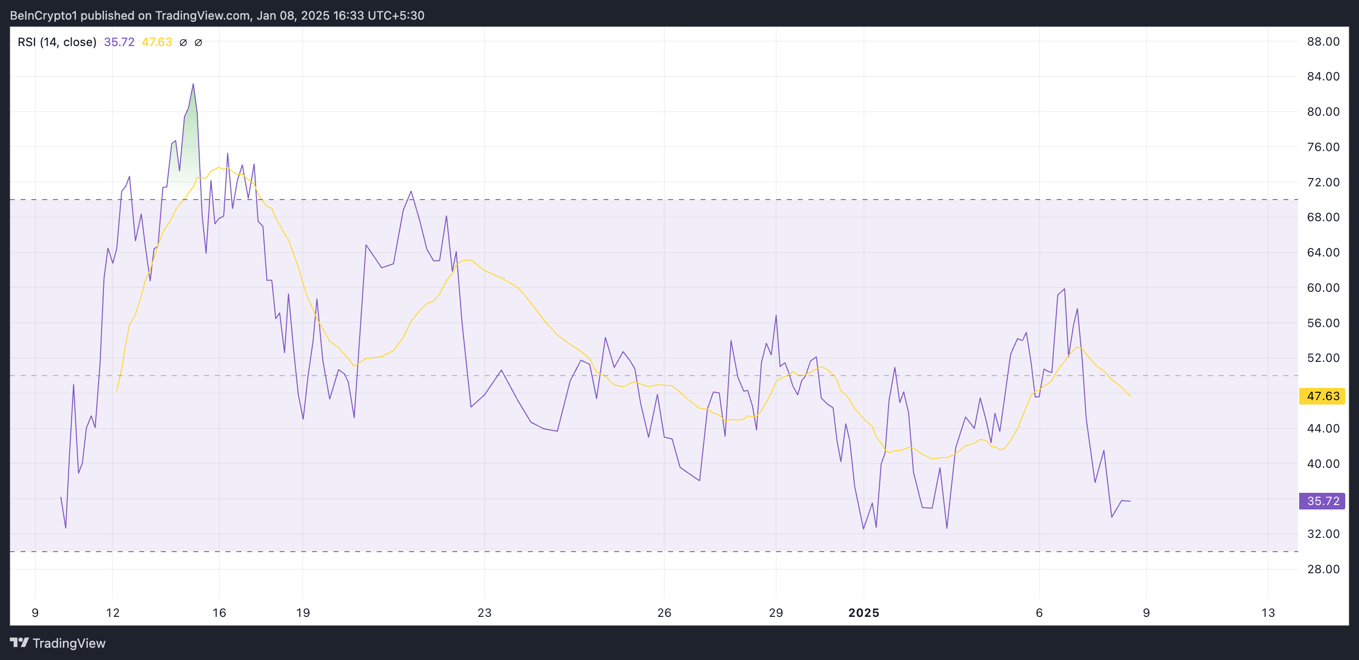 يستمر سعر رمز HYPE في التداول تحت الخط الأحمر لمؤشر Super Trend الخاص به، الذي يتتبع اتجاه وقوة الاتجاه. يظهر المؤشر كخط على مخطط السعر ويتغير لونه للإشارة إلى الاتجاه: أخضر للاتجاه الصاعد وأحمر للاتجاه الهابط.