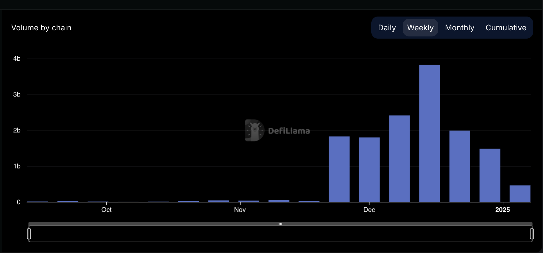 عندما ينخفض إجمالي القيمة المقفلة لبروتوكول ما، فإنه غالبًا ما يشير إلى انخفاض مشاركة المستخدمين. ينعكس هذا في الانخفاض المستمر في حجم التداول لهايبيرليكود. وفقًا لـ DefiLlama، انخفض هذا بنسبة 19% خلال الأسبوع الماضي.