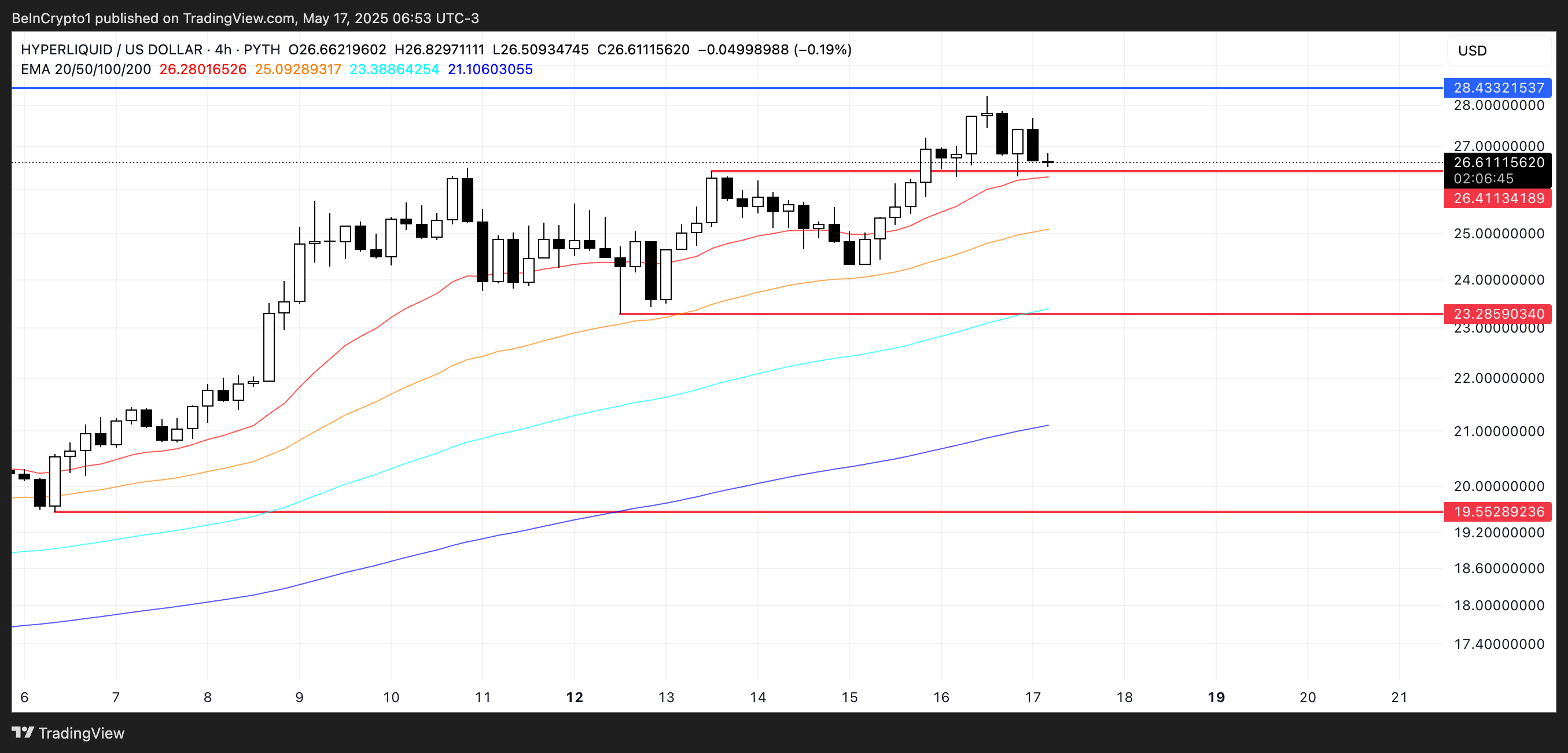 حاليًا HYPE يحوم فوق مستوى دعم رئيسي عند $26,41، وهي منطقة قد تحدد حركته الرئيسية التالية.