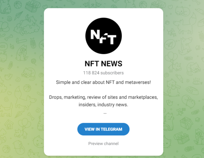 وتوفر قناة NFT News على تليجرام تغطية خاصة بهذه الرموز وميتافيرس، ليشاركوا أحدث الاتجاهات والتسويق والمراجعات الخاصة بكل رمز وأخبار الصناعة.