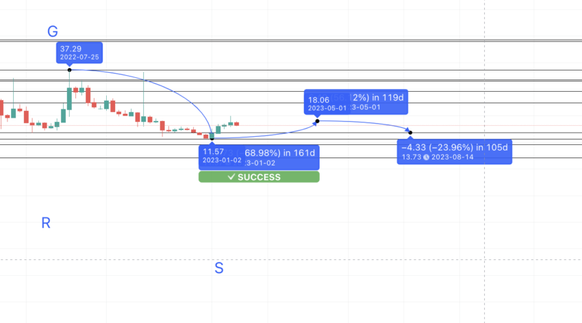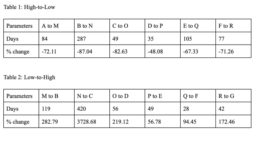 إذا كانت نقطة G هي الأخيرة على الرسم البياني، يمكن توقع الانخفاض التالي عند S الذي يتبع المتوسط من الأعلى إلى الأدنى -71.40%.