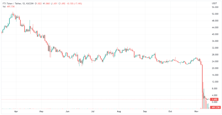ولكن ارتفاع FTT جعل مؤسس البورصة؛ سام بانكمان فرايد قائد للعملات الرقمية قبل أن تعلن البورصة إفلاسها.