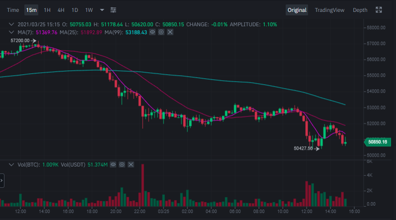 يظهر الرسم البياني لعملة البتكوين لمتابعة أزمنة مختلفة.