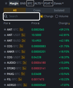 إذا كنت ترغب في التداول مقابل عملة أخرى يمكن تحديد البتكوين أو الزوج الذي تختاره أو البحث عن أزواج فيات أو عملات معدنية.