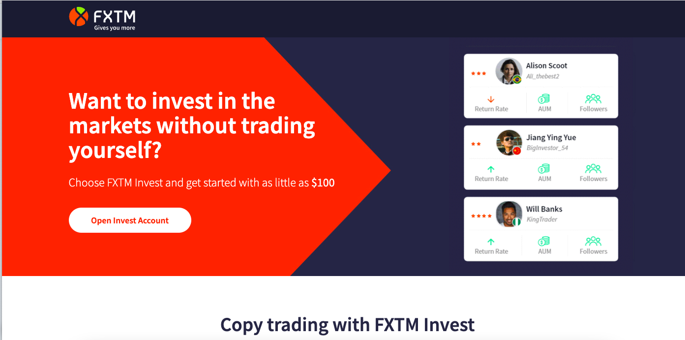 - FXTM Invest (تتيح لك تحديد أفضل المتداولين ونسخهم).