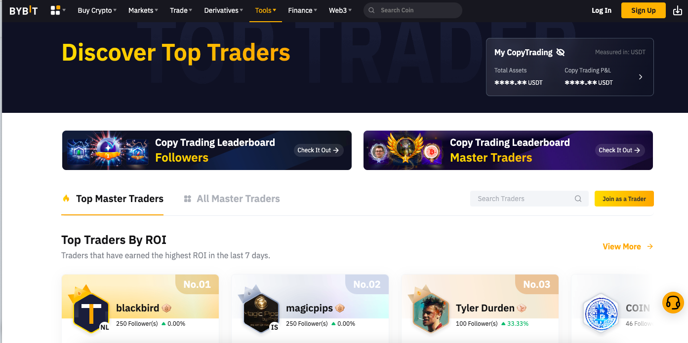 لاحظ أيضًا أنه يمكنك الوصول إلى برنامج نسخ التداول من Bybit من إيداعك الأول. بمجرد اختيار المتداول الخاص بك، يمكنك البدء في تحقيق دخل سلبي دون مراقبة حسابك. بالطبع، يمكنك إغلاق مراكزك في أي وقت.