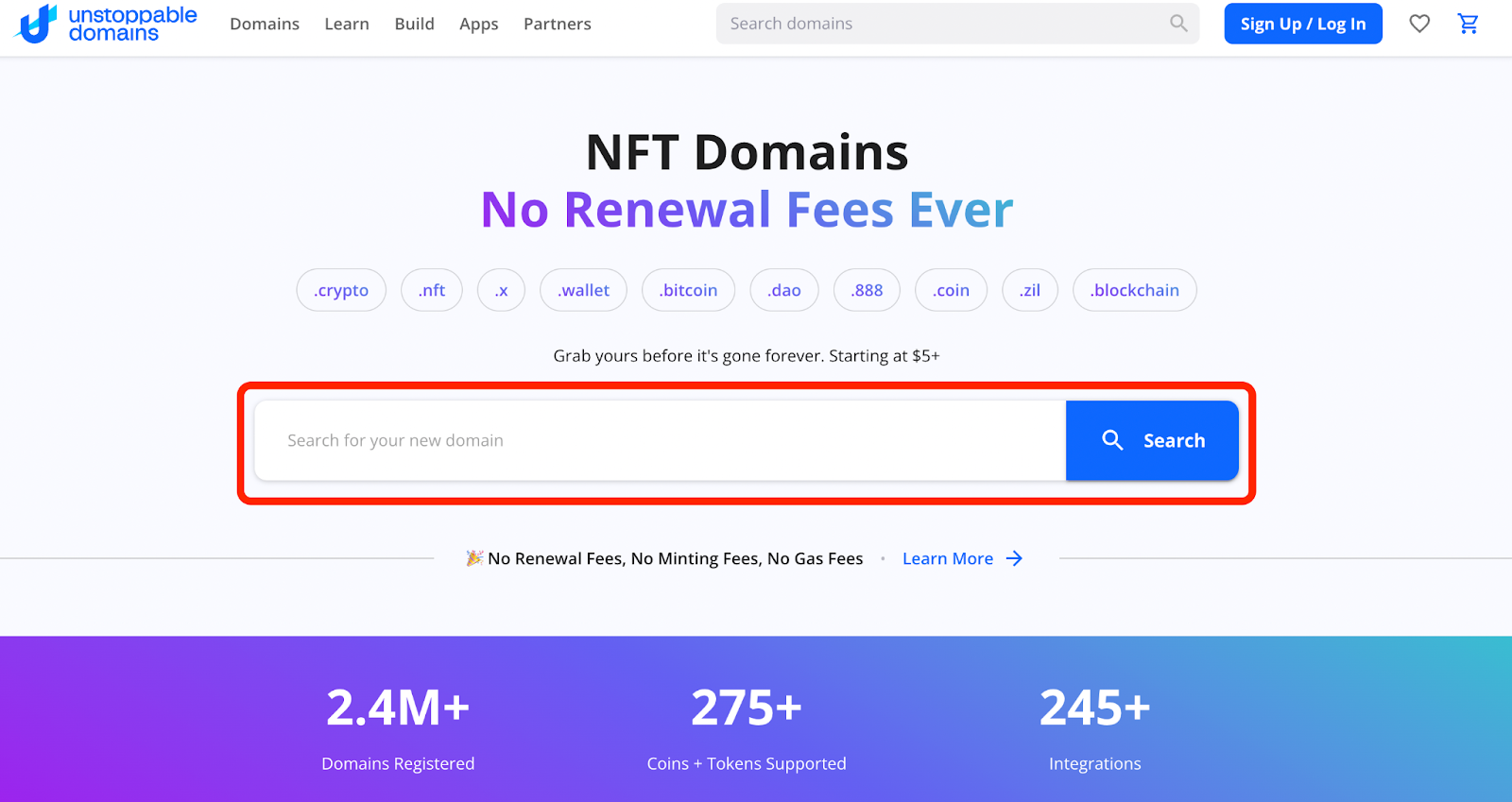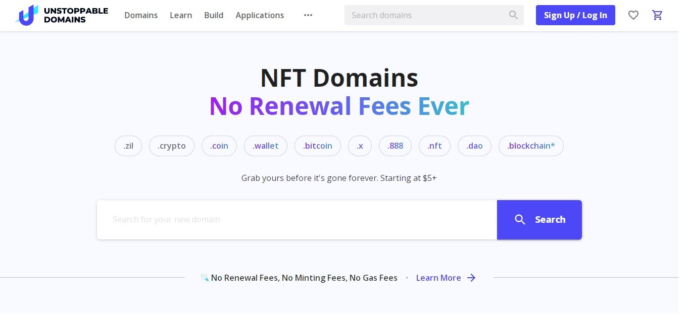 الخطوة 1: توجه إلى Unstoppable Domains وابحث عن اسم نطاقك
