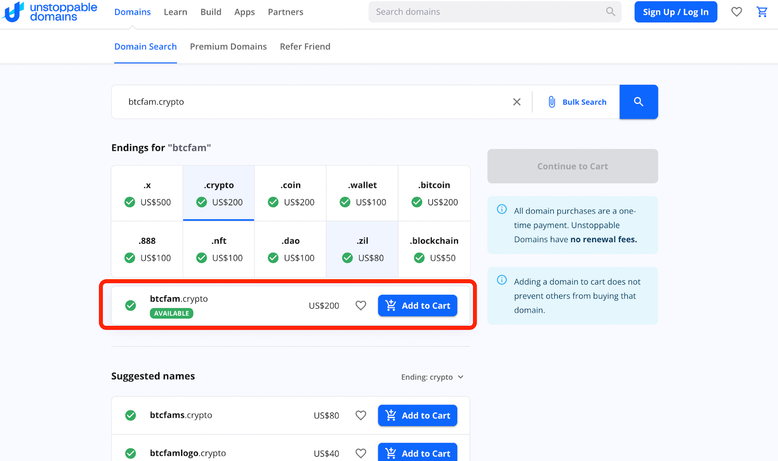 - الخطوة 1: توجه إلى Unstoppable Domains وابحث عن اسم نطاقك