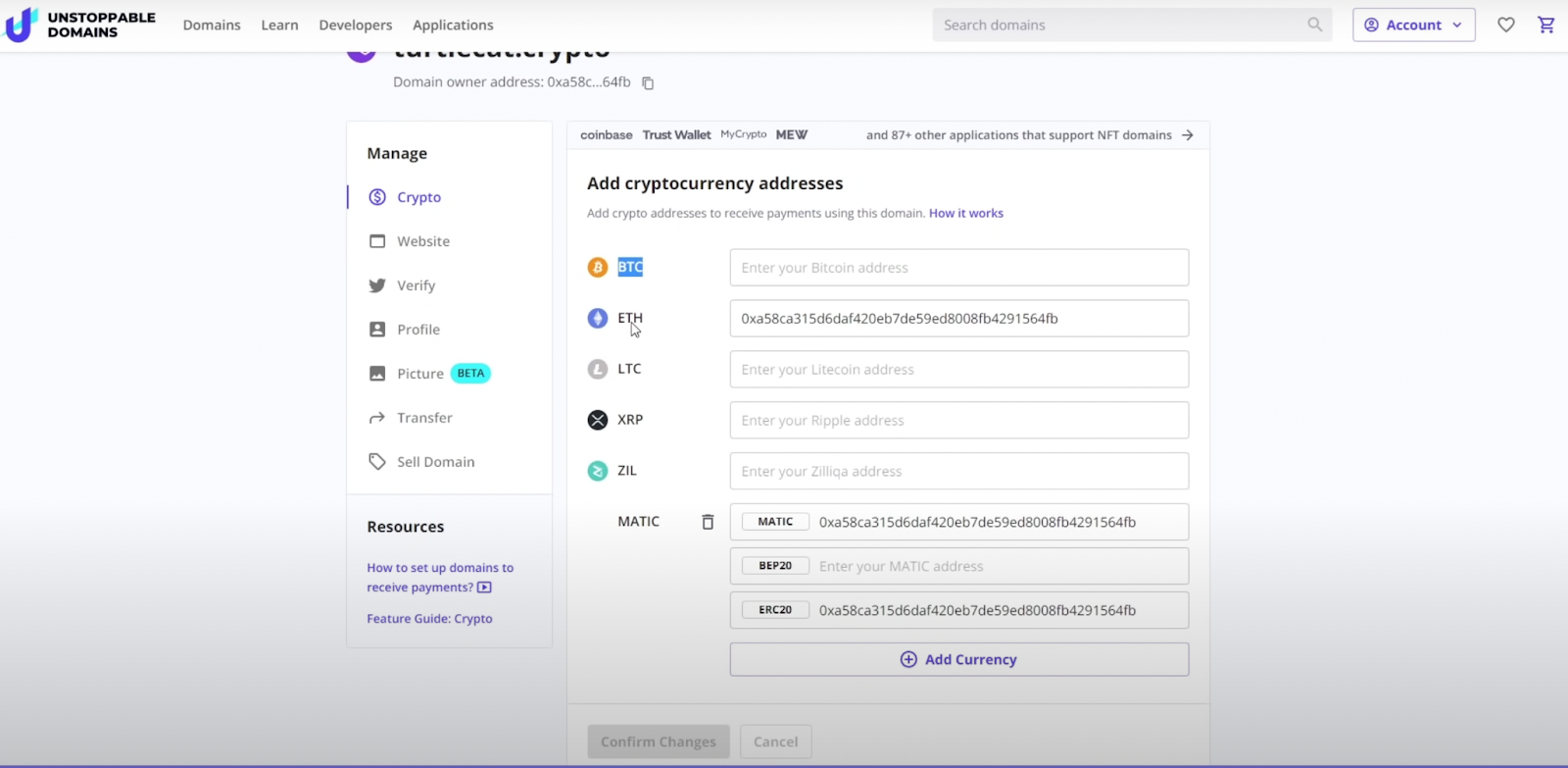لست بحاجة إلى العناوين الطويلة المختلفة للعملات المعدنية وبلوك تشين بل شارك اسم النطاق مع من يرغب في إرسال العملة المشفرة.