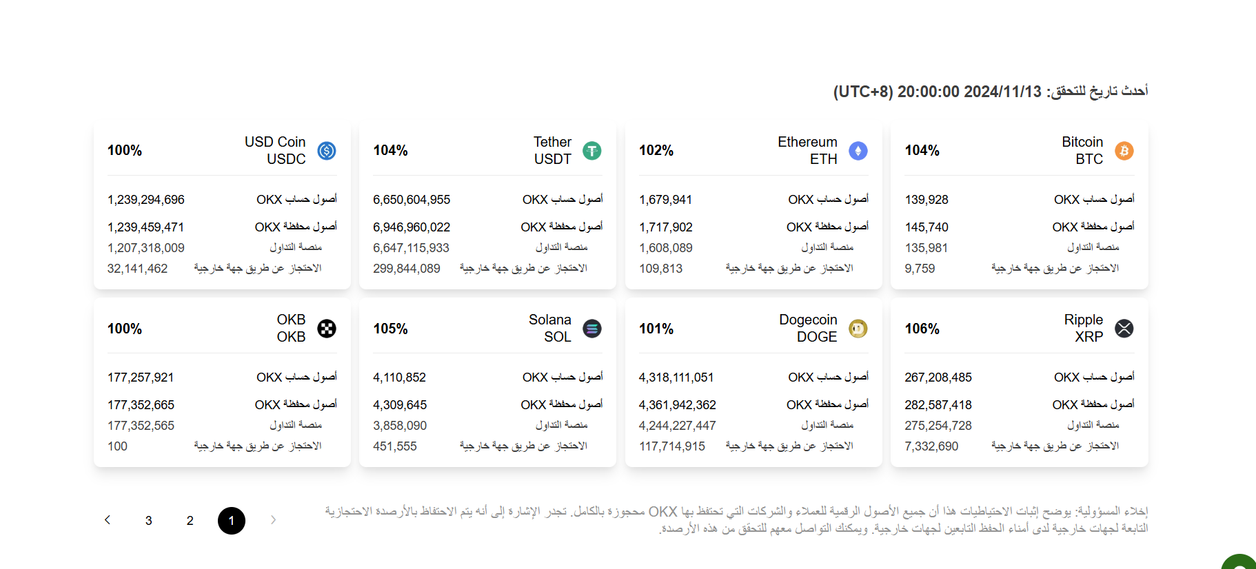 في نهاية المقال نود توضيح أن منصة أوك إكس هي دائما من الإختيارات الأولى لمعظم الأشخاص في الوطن العربي. وهذا نظرا لأن المنصة يقودها خبراء وهي موجودة في مجال الكريبتو منذ عام 2017 وسمعتها قوية جدا. كما أن المنصة تلتزم دائما بالقوانين وحاليا تعتبر من المنصات القليلة جدا التي حصلت على ترخيص في الإمارات لتداول العملات الرقمية. كل هذه علامات على الثقة في المنصة. أيضا المنصة موجود عليها إثبات إحتياطي خاص بها. وهذا الإثبات ببساطة هو دليل على أن أموال المودعين في آمان وحفظ حيث أنك يمكنك أن تشاهد بث حي لمحافظ المنصة التي يتم الإحتفاظ بها بالعملات الخاصة بالمودعين. وهذا بالطبع طلب إنتشر في عالم الكريبتو بقيادة منصة بينانس بعدما حدثت كارثة هبوط منصة FTX المركزية والتي سرقت أموال المودعين وقامت بالتداول بها وتعرضت لخسارات كبيرة.