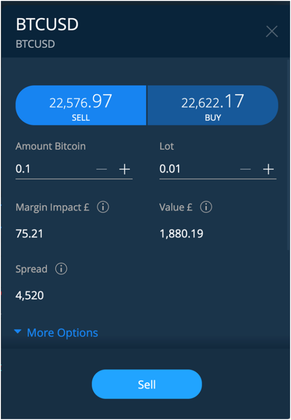 إذا أظهر المخطط أن اتجاه سعر الأصل في انخفاض، قد يقوم المتداولون بالضغط على زر "بيع"، لأنهم يتوقعون استمرار انخفاض السعر. وهذا يعني أن المتداولون يقومون بفتح "موضع بيع" لبيع الأصل في هذه اللحظة بهذا السعر. وفي حال استمرار انخفاض سعر الأصل، يمكن للمتداولين أن يغلقوا معاملة التداول ويستلموا الربح وهو عبارة عن الفرق بين سعر البيع (لحظة قيام المتداول بفتح موضع البيع) ولحظة غلق حركة التداول.