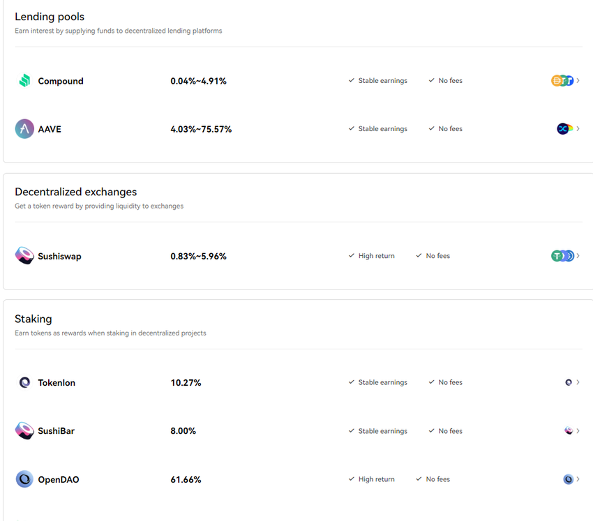 يتم الإستثمار عبر منصة أوك إكسOKX من خلال طرق مختلفة. يمكن الإستثمار من خلال التمويل اللامركزي DeFi. فالتمويل اللامركزي DeFi طريقة من أفضل الطرق لتحقيق الربح. وهذا نظرا لأنها لا تتطلب الكثير من البيانات الشخصية.