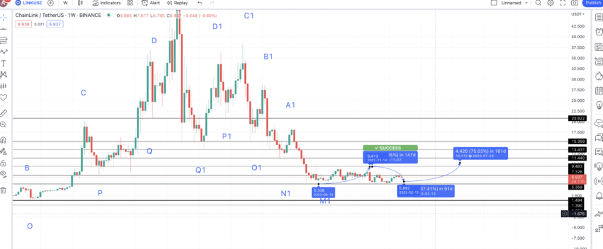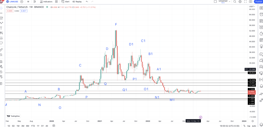 على أن يكون الهدف التالي أو الحد الأقصى لعملة LINK لعام 2023 في اتجاه جديد ويمكن أن تمثل هذه النقطة A2.