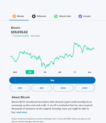 وننبه أن أي أصول تشفير يتم الحصول عليها عبر باي بال هي الأصول التي يتم الاحتفاظ بها عبر النظام الأساسي فلن تسمح منصة باي بال بسحب الأصول إلى محفظة أخرى للعملات المشفرة.