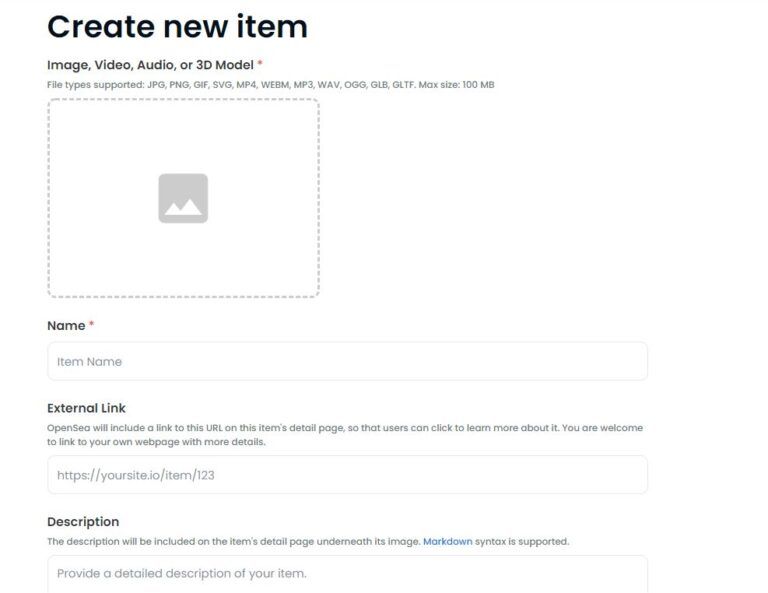 الخطوة الثالثة في إنشاء وصنع الرموز غير القابلة للاستبدال NFTs مجانًا على منصة OpenSea