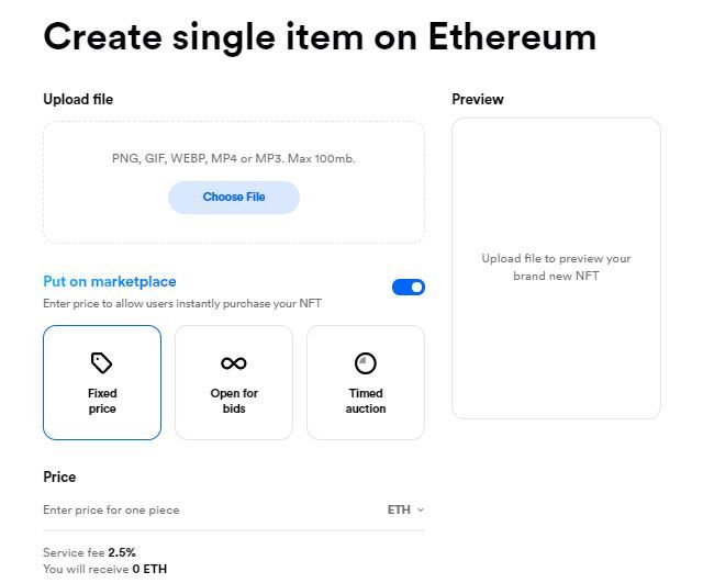 وبعد الإنشاء سيكون الرمز متاحًا للبيع في Rarible وحتى يتم الشراء يتم سكه على Ethereum blockchain فلن يتم تسجيله على بلوك تشين.