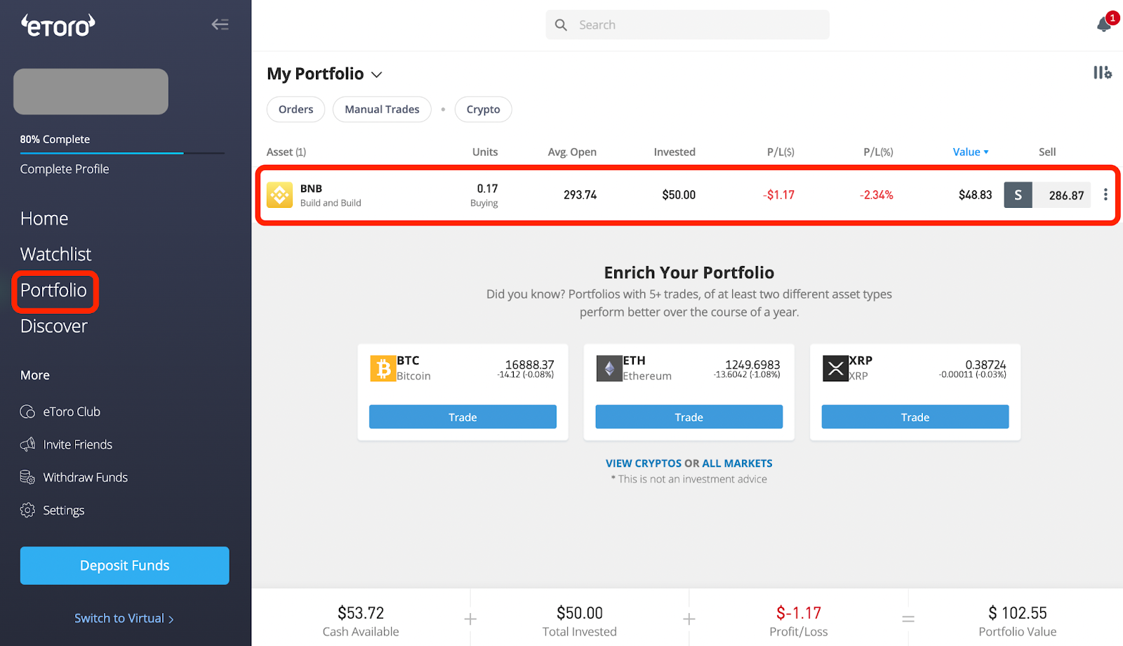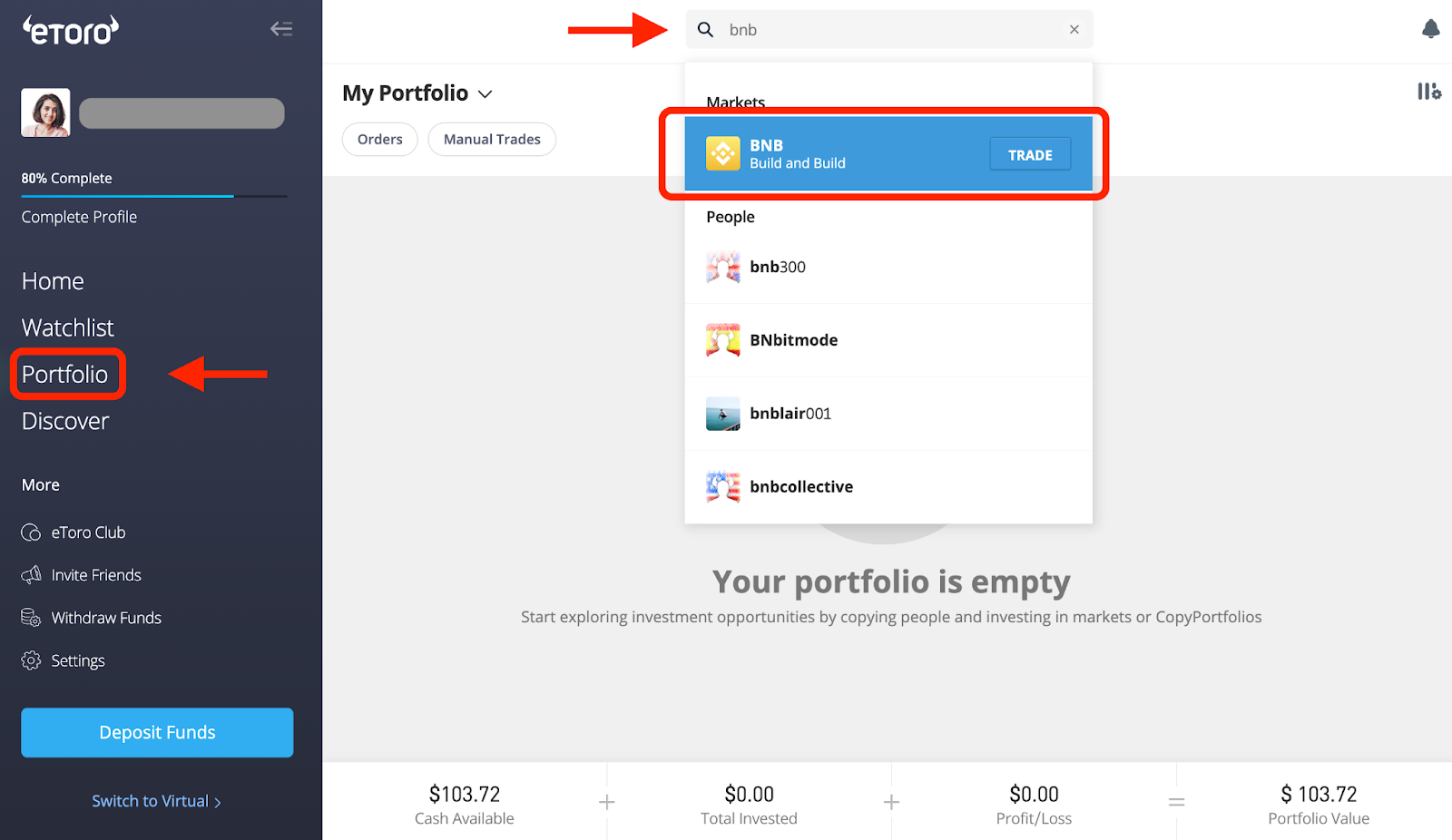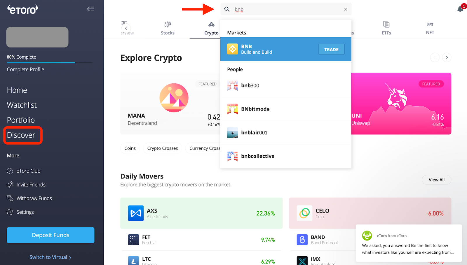 خطوات الشراء المراد اتباعها عبر بورصة eToro لشراء عملات BNB