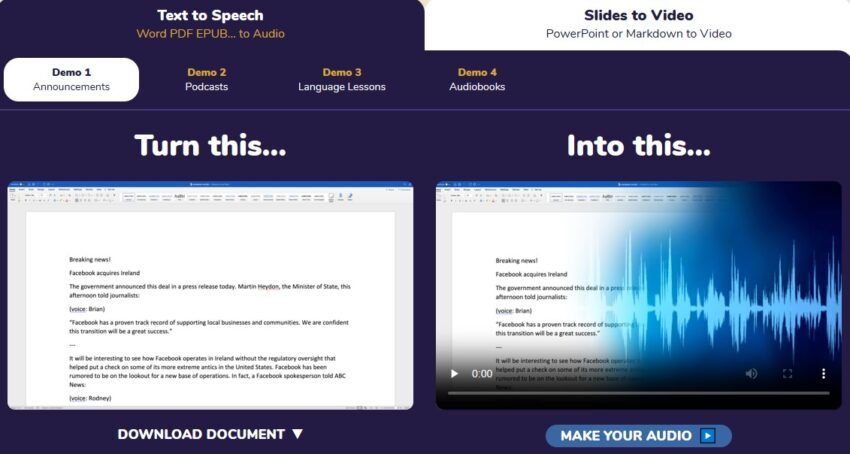 تحويل النص إلى أصوات واستخدام هذه المسارات الصوتية، ما على المستخدم سوى كتابة أو تحميل البرنامج النصي.