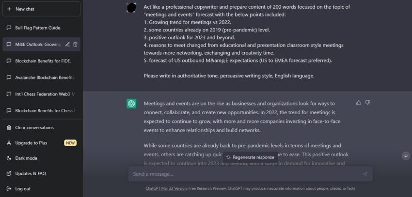 وكي يتم إنتاج المحتوى بناءً على الإدخال عبر المحادثات، ويمكن استخدام مثل هذه المعلومات في المستقبل.