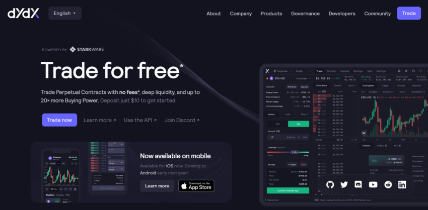 توفر البورصة للمتداولين تداول المشتقات والعقود الآجلة الدائمة من خلال حل إيثيريوم ذات الطبقة الثانية StarkEx، وتتيح تسجيل الدخول بدون عملية اعرف عميلك، بما يوفر لهم الخصوصية عند التداول كما لا تقدم رسوم غاز وتوفر رافعة مالية أقل للمستخدمين من خلال آلية دفتر الطلبات.