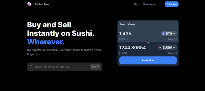 بورصة متاحة عبر سلاسل متعددة وتحتوي المنصة على كود مفتوح المصدر لإنشاء المطورين لبورصة لامركزية من خلال نسخ الكود وتنفيذه ويمتلك النظام مزايا مثل عرض تعدين السيولة لجذب مزودي السيولة والمشاركة في قرارات الحوكمة من خلال عملة المنصة SUSHI.