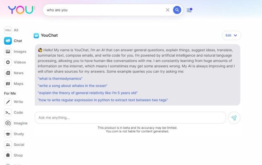 - 2- برنامج YouChat