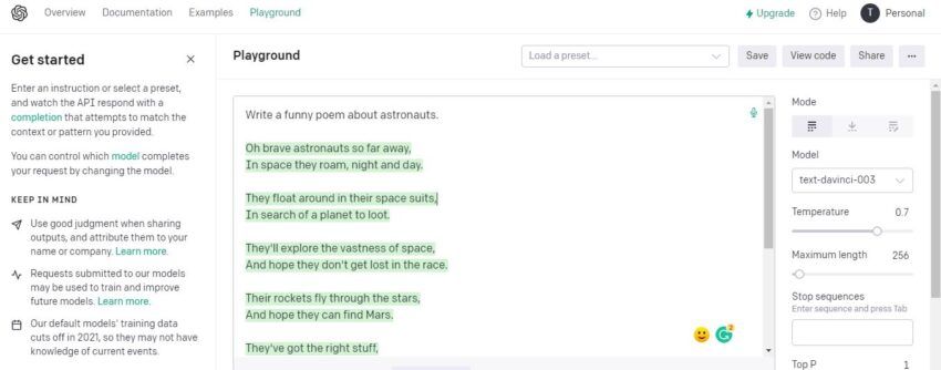 طورته شركة OpenAI التي طورت تطبيق ChatGPT ولكن تم تصميمه بهدف مختلف وهو مساعدة المطورين على استكشاف معالجة اللغة الطبيعية وتجربتها، ويمكن تحسينه ليجري تجربة أكثر تفاعلية بما يسمح بالتواصل مع المحادثة القائمة على الذكاء الاصطناعي.