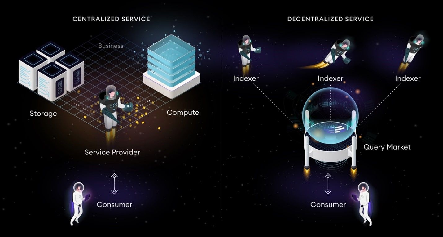 يوفر مشروع العملة الرقمية جراف GRT الحل لهذه المشكلة عن طريق توفير حزمة من الخدمات اللامركزية. وهذه الخدمات تساعد المستخدمين على البحث على البيانات على البلوك تشين. ولكن سيتم البحث بدون أن يتم إتصال المستخدم بطريقة مباشرة بالخدمة. وهذا سوف يزيد من اللامركزية والشفافية على الشبكة ويحافظ على الفلسفة اللامركزية التي يتميز بها ويب3. ولهذا السبب يتم تسمية مشروع العملة الرقمية جراف GRT بجوجل شبكات البلوك تشين.
