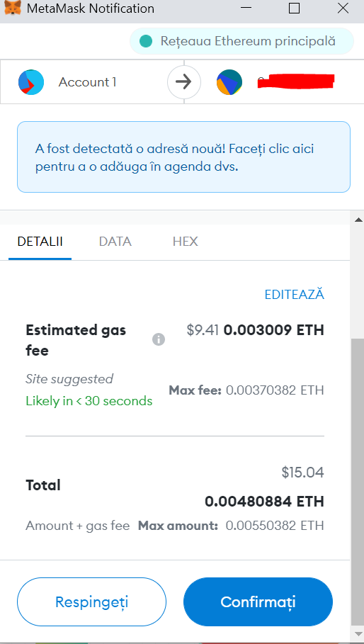 تحتاج إلى تأكيد المعاملة ورسوم الغاز عند إجراء العملية.