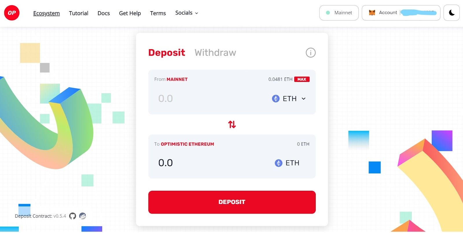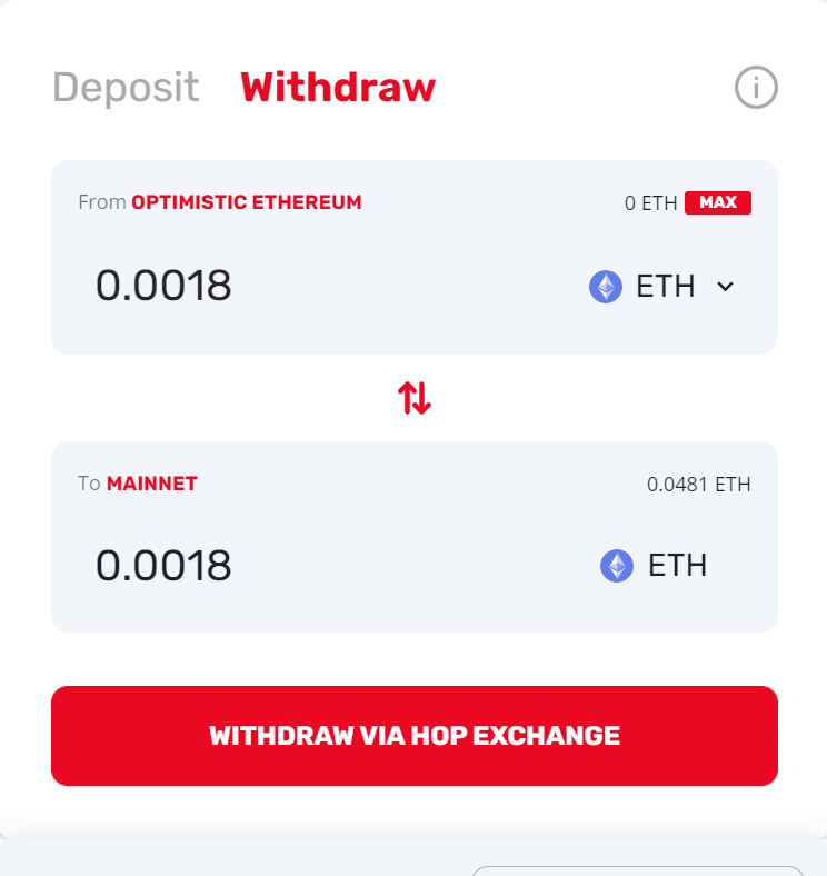 يمكن بعد ذلك عمل إيداع وبمجرد الاستلام ستبدأ الشبكة في إيداع أصولك الرقمية على في أوبتمزم إيثيريوم.
