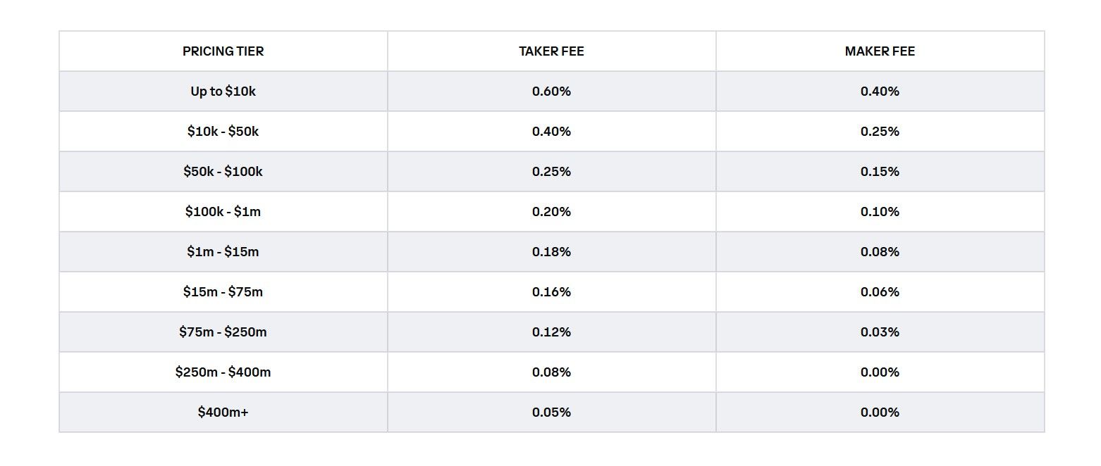 لاحظ الفرق ما بين رسوم Taker و maker ودائما ستجد رسوم maker منخفضة أكثر. وهذا لأنك تقوم بتزويد السيولة على سجل الطلبيات فأنت تضع أمر شراء وعندما يهبط السعر لهذا الحد يتم تنفيذ الأمر فقط. ولكن من خلال Taker أنت تقوم بسحب السيولة من السوق ويتم أمر شرائك بشكل فوري وبالتالي تدفع رسوم أكثر.
