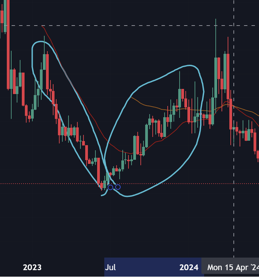 فقد بدأ سوق الكريبتو يتعافى بشدة في ربع الأخير من 2023 ولكن SWEAT بدأت في التعافي قبل هذا بقليل. وظلت العملة في تريند صعودي مستمر حتى شهر مارس 2024 تقريبا. رفع هذا توقعات المستثمرين والمتداولين. نجحت العملة بالكاد في الإغلاق أسفل نقطة 0.01$ بقليل وهذا يعني أنها كانت تحتاج حينها 100x من أجل الوصول ل1$ مما يعني صعوبة الهدف. ولكن الكثير من العملات قد حققت هذا في 2021 فلماذا لم يتحقق في 2024؟
