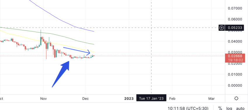ومع ذلك يمثل تداول العملات الرقمية في الفترة الحالية عند النطاق السعري 0.02744 دولار.