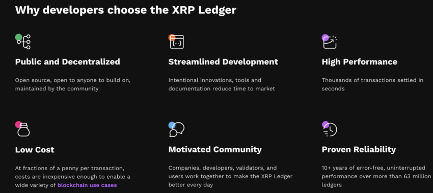 يعمل XRP Ledger كمنصة حيث يمكن للمطورين إنشاء حلول للمشكلات المرتبطة بالتحويلات وترميز الأصول وحتى أوجه القصور المالية التقليدية. يدعم blockchain لغات برمجة متعددة ويساعد في إنشاء حلول خاصة بالأعمال.