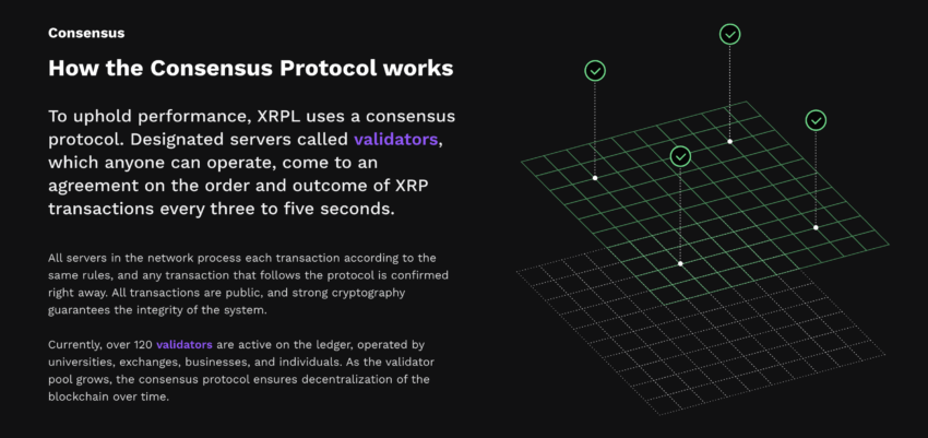 السريعة الرئيسية► يحتوي XRP Ledger على آلية إجماع فريدة من نوعها ، مصممة لمدفوعات فعالة ومنخفضة التكلفة وسريعة عبر الحدود.