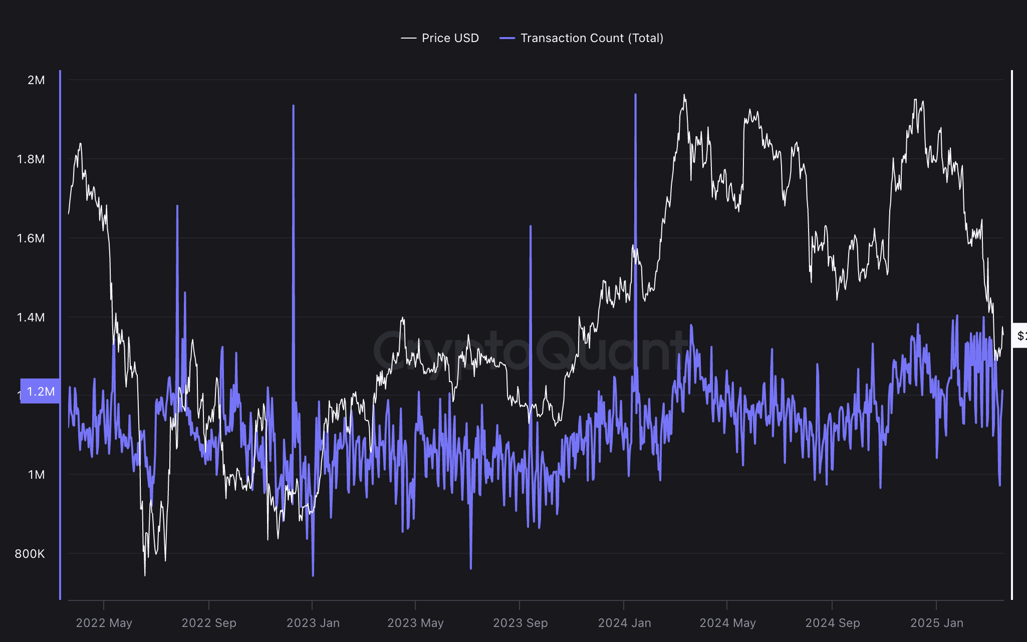 اعتبارًا من أوائل 2025، يظل عدد المعاملات ثابتًا، على الرغم من أن الأسعار قد تضاعفت تقريبًا منذ 2023. نعم، انخفض عدد المعاملات قليلاً في مارس 2025، لكن المستويات ليست مقلقة بعد.