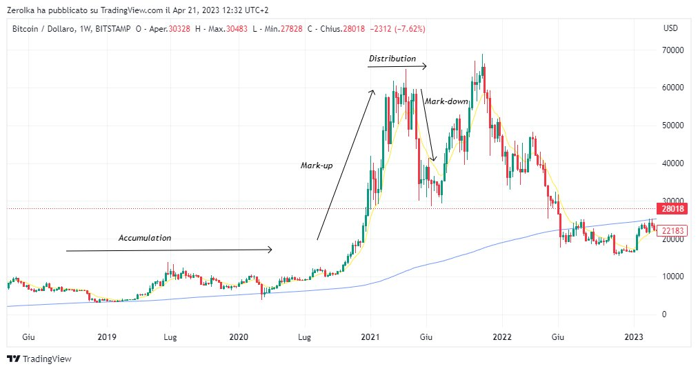 وهنا من المهم أن تعرف أن الأسواق المالية بما فيها العملات الرقمية تمر بأربع مراحل: