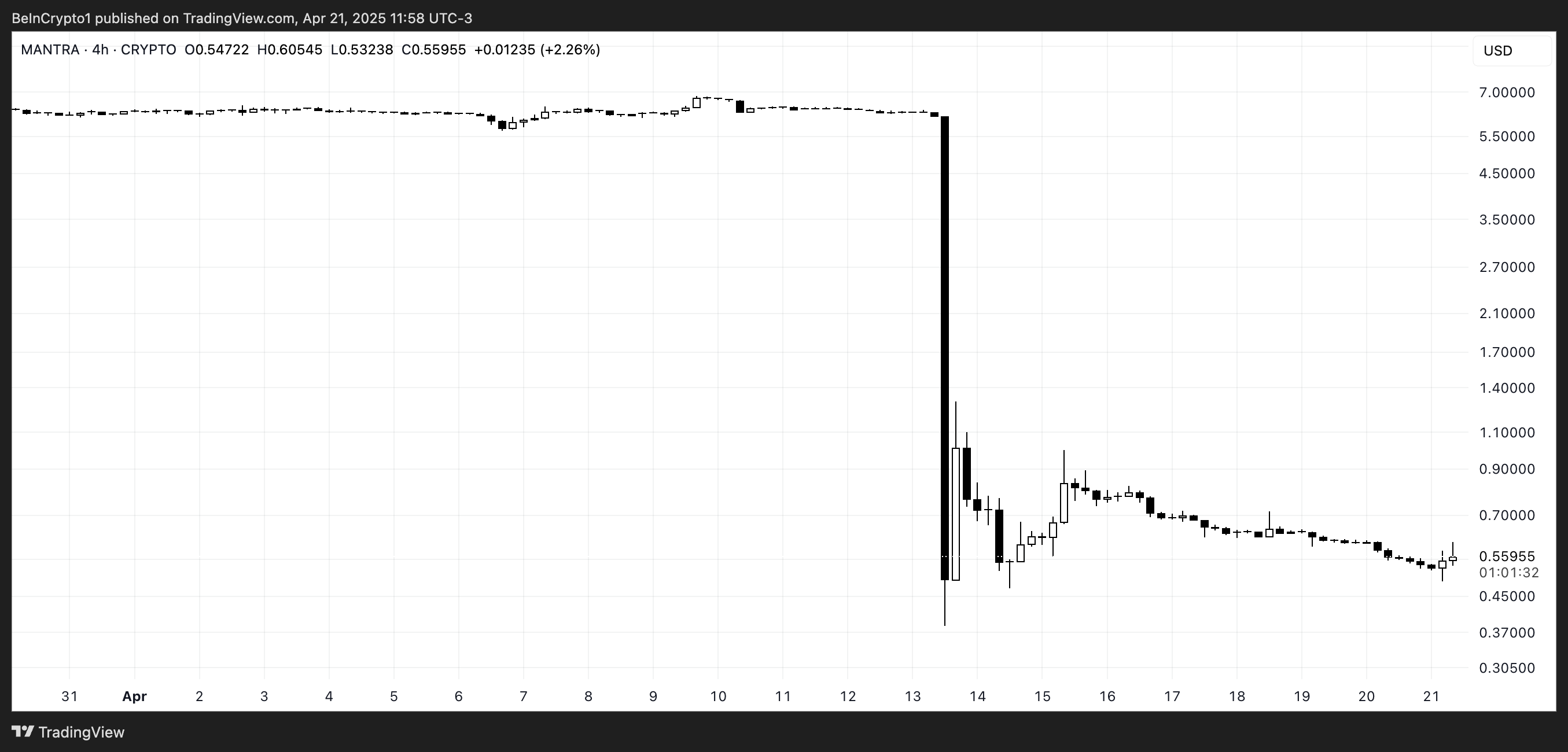 عانت مانترا، التي كانت واحدة من أكبر اللاعبين في قطاع الأصول الواقعية (RWA)، من انهيار دراماتيكي في 13 أبريل، حيث انهار رمزها بأكثر من 90% في أقل من ساعة ومحو أكثر من 5,5 مليار دولار من القيمة السوقية.