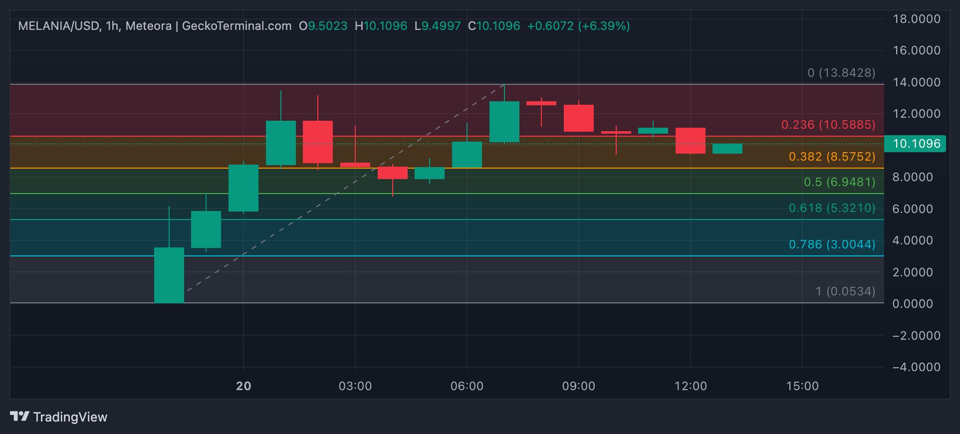 ومع ذلك، إذا بدأت عمليات البيع، يمكن أن ينخفض سعر MELANIA إلى 8,57$.