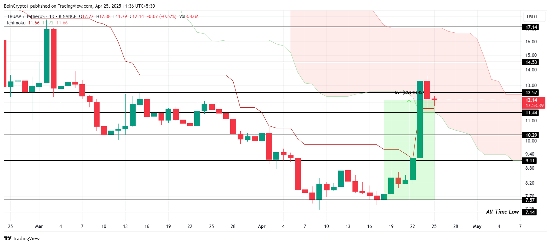 على الرغم من أن ترامب فشل في تأمين $12,57 كمستوى دعم، إلا أن إمكانية تحقيق هذا المستوى في الأسابيع القادمة تظل قوية. تأثير الرئيس الأمريكي على تحركات السوق، مدفوعًا بالإعلانات غير المتوقعة، يمكن أن يوفر الحافز اللازم لترامب للارتفاع أكثر، وربما يصل إلى $14,53 مع اتباعه للاتجاهات المالية الأوسع.