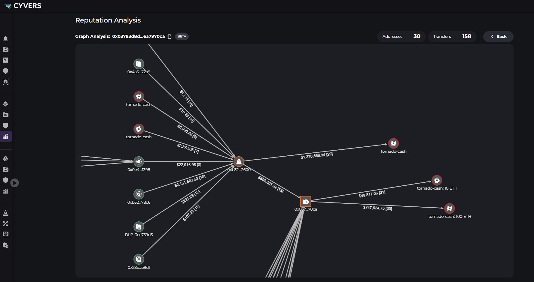 بعد الاستغلال، تم نقل الأصول المسروقة إلى تورنادو كاش، وهو بروتوكول شهير يخفي المعاملات.