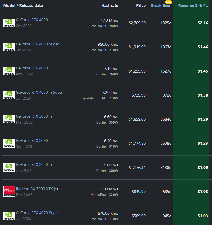 رغم هذه التحديات القانونية، ارتفع سهم إنفيديا بنحو 190% منذ بداية العام. كان ذلك مدفوعًا بالطلب القوي على وحدات معالجة الرسومات الخاصة بها في تعدين بيتكوين. تفوقت وحدات معالجة الرسومات من السلسلة 4000 للشركة على AMD في تصنيفات الربحية واكتسبت حصة سوقية كبيرة.
